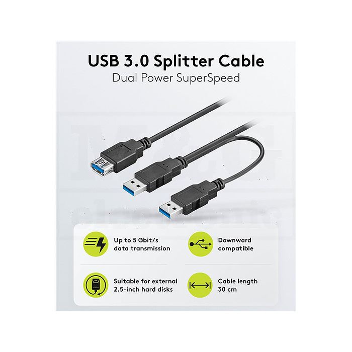 - USB 3.0 (Tip A) muški 2x > USB 3.0 (Tip A) ženski 15W, 3A, 5 Gbit/s