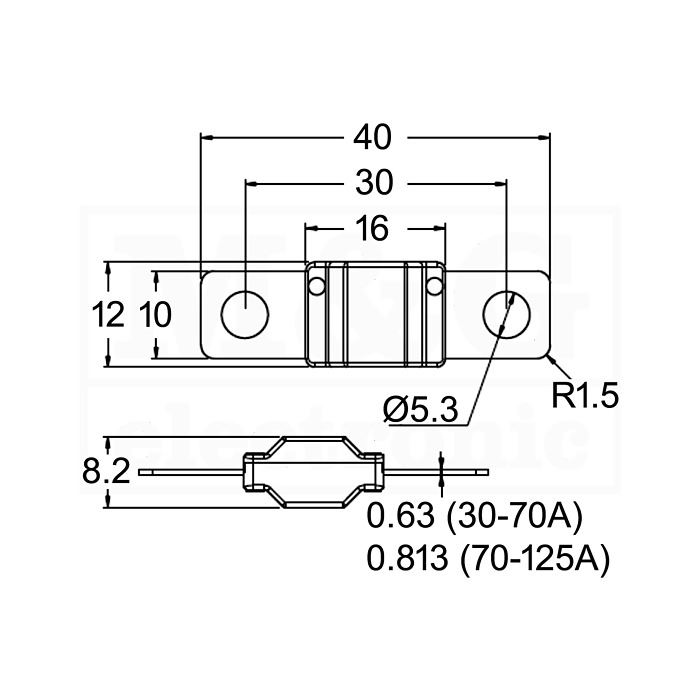• To je osigurač sporog dejstva koji se montira pomoću dva vijka M5.