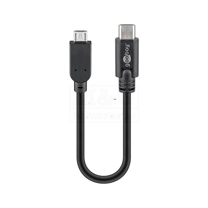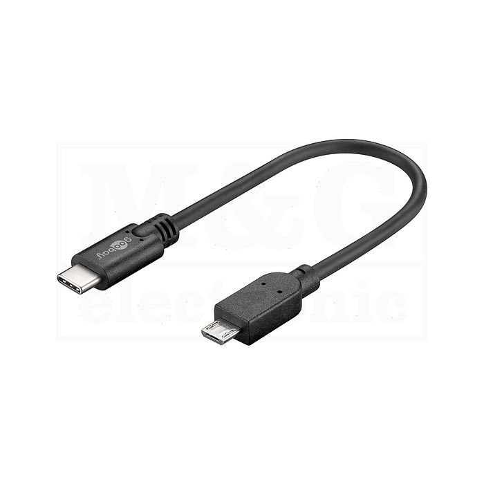 • USB-C kabl za povezivanje Mikro-USB uređaja, npr. starijih pametnih telefona, tableta ili Bluetooth zvučnika, sa USB-C punjačima, prenosnim baterijama, laptopovima itd.