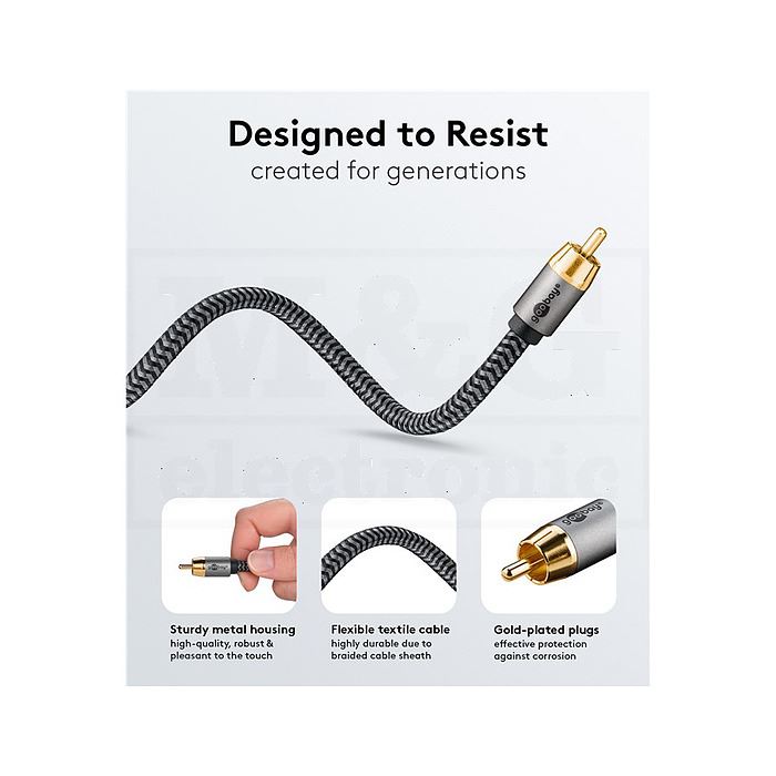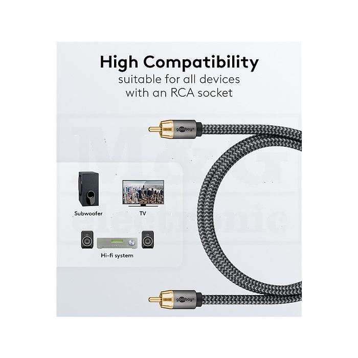 • Mono RCA kabl za povezivanje Hi-Fi opreme kao što je sabvufer sa resiverima, pojačalima, televizorima i kućnim bioskopima sa RCA konekcijama