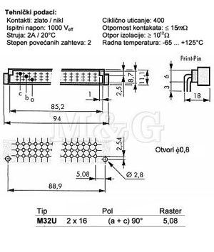 KONEKTOR DIN 41612 Tip C 32 PINA Ž (a+c)