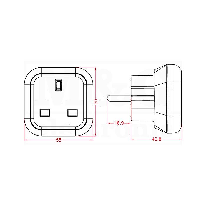 • Adapter za utikač iz Velike Britanije u Evropu za visoko-performansnu elektroniku kao što su punjači, laptopovi, igračke konzole, fenovi za kosu ili električni brijači