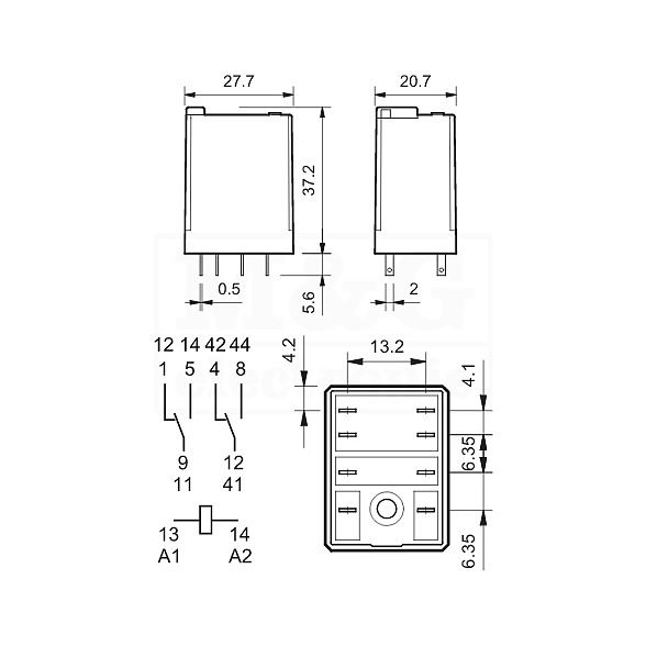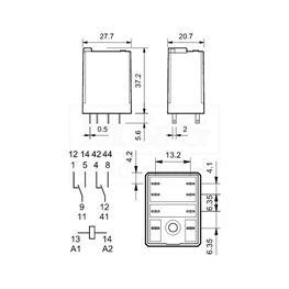 Konfiguracije kontakta ovih releja je DPDT (2 para kontakta uključeno-isključeno).