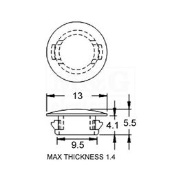Polyamide NYLON 66 (UL) , UL94V-2 Ø9,5x5,5x1,4 mm