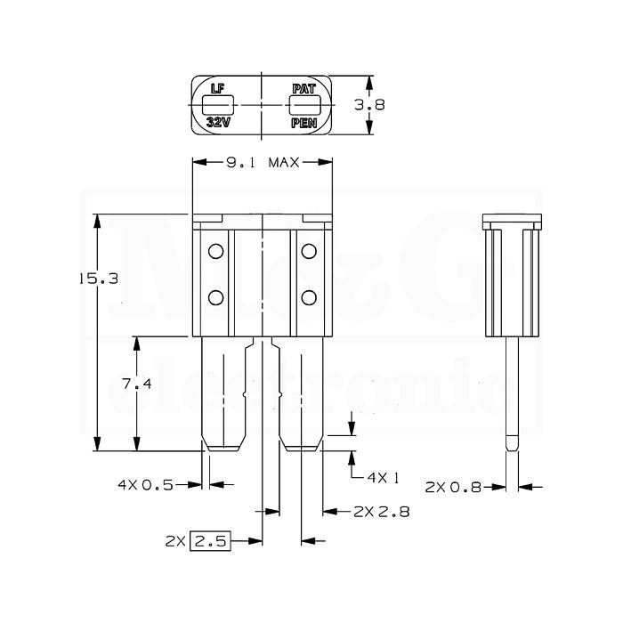 • Ovi mali, dvokraki osigurači se koriste u električnim sistemima modernih vozila, posebno onih proizvedenih u Severnoj Americi.