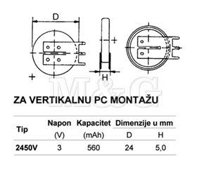 LITIJUMSKA ZA VER.MONT.3 V 560 mAh