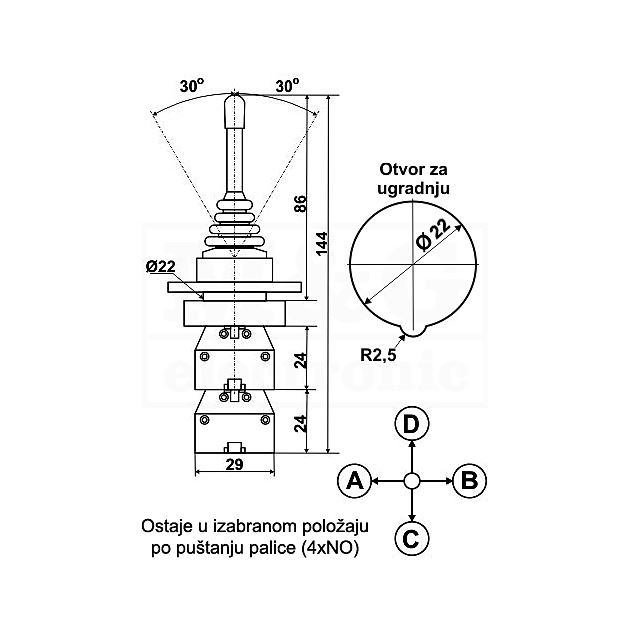 JOYSTICK PREKIDAČ XD2-PA14CR