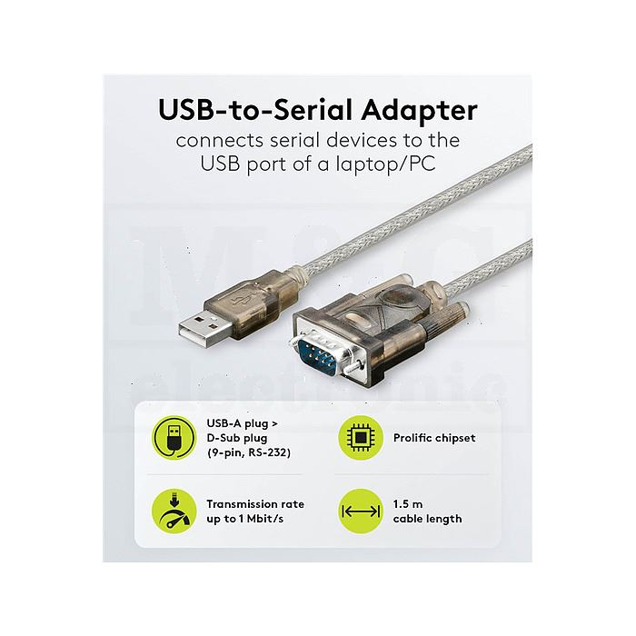 • Sa dometom kabla od 1,5 m, RS-232 USB adapter nudi fleksibilne opcije primene