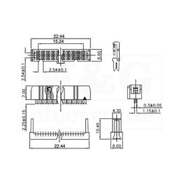 2x7 pina , 2,54mm , 500V AC , 3A , -40+105-C