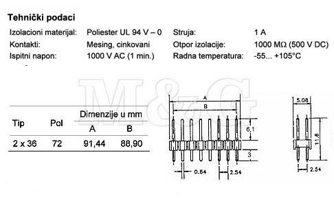 KONTAKTNA LETVICA 2,54 mm MUŠKA 2x36 pina