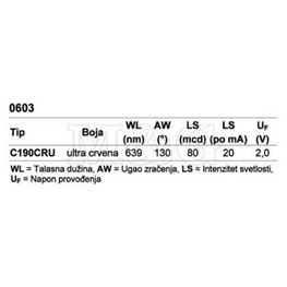 18-180 mcd , 130°, 631-639 nm , 1,6-2,4 V , 20mA