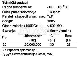 QUARZE KRISTAL HC49/U 20 MHz