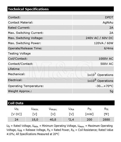 TIANBO HJR1-2C-L-24V DC DPDT 2A 2880R
