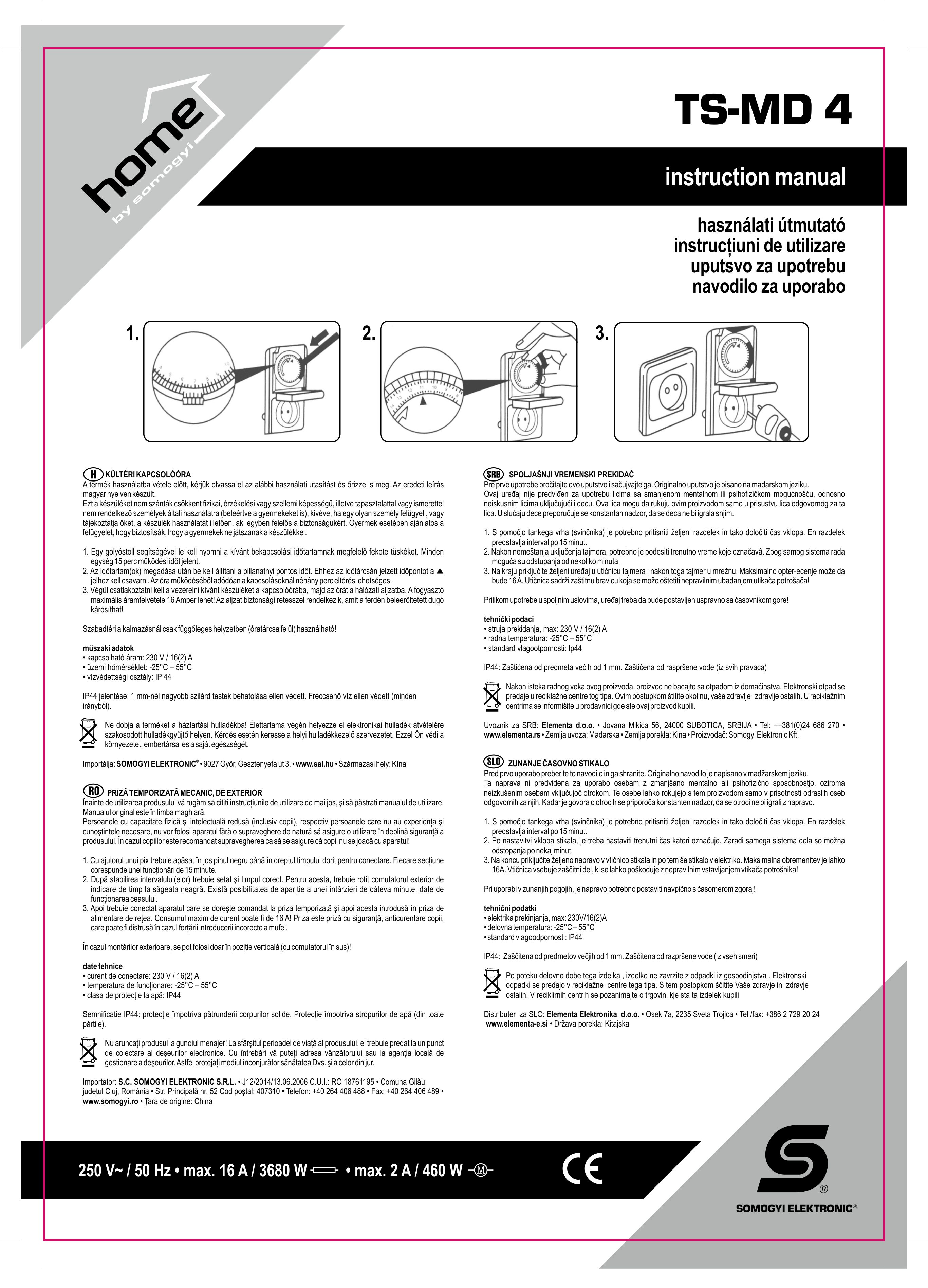 - 16 A / 3680 W (omski potrošač); 2 A / 480 W (induktivni potrošač)